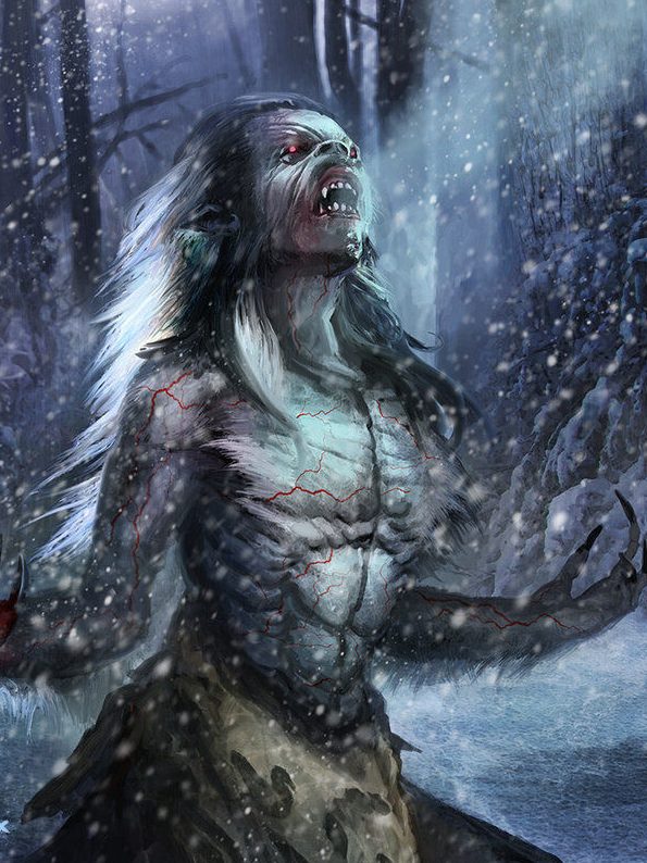 La guardia di Morwen regge decisamente bene, ma la quarta Lámia riesce a penetrare le sue difese, sferrando un dolorosissimo morso al polpaccio della donna. Un fuoco di rabbia ed odio divampa dalla ferita, come se la Lámia avesse iniettato un veleno maledetto nelle carni; dilaga, gli investe le gambe, il petto e sale velocemente alla testa, annebbiandogli la vista, facendogli esplodere la testa, come se stesse bruciando arsa viva su un rogo. Il suo fisico reagisce, i muscoli si ingrossano a dismisura, la bocca si spalanca in un urlo disumano, la mascella si sloga con un disgustoso “craaaaack!!” per fare spazio a delle zanne affilate come lame che rapidamente crescono. Morwen si guarda le mani, e davanti agli occhi sconcertati ed orripilati dei compagni, lunghi artigli neri spuntano dalle dita, mentre una ispida pelliccia le ricopre la schiena ormai nuda e la pelle inspessita come il cuoio. Dopo pochi secondi, un famelico Mannaro alto più di due metri si gira e torreggia sulla Lámia…