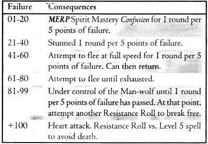 Cintura Wolf-coming: (Oggetto maledetto, TR 75 + 1 Punto Ombra): cintura in pelle scura +10 BD, Percezione +30 e Visione Crepuscolare. Ogni attacco fisico subito che causa un Crit. D+, ha una probabilità del 20% di tramutare il portatore immediatamente in un Mannaro (possibile TR Flusso 19° LVL, se ha successo guadagna +10 al TR successivo per ogni successo). Se il TR ha successo il portatore ha la facoltà di cedere volontariamente alla maledizione. Questo stato licantropico*, i suoi sviluppi futuri e la possibilità di controllarlo, sono a discrezione del Game Master.