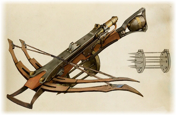 Balestra leggera di Angamaitë: questa geniale balestra nanica +15 BO (Fumble 2, Gittata base 25 m, +20 BO fino a 15m) ha un meccanismo di auto ricarica e può essere utilizzata con una mano. Ha un caricatore con 5 quadrelle, esaurite le quali richiede 3 round per la ricarica completa. A comando può convogliare 2 volte al giorno essenza magica nel quadrello, causando un Crit. da Impatto Magico dello stesso livello dell’attacco.